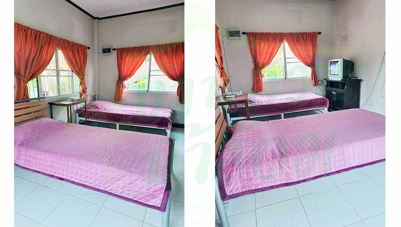 | บ้านพักแบบหลัง สำหรับผู้เข้าพักแบบครอบครัว มีทั้งเตียงแบบแยก และพื้นที่นอนรวมกัน